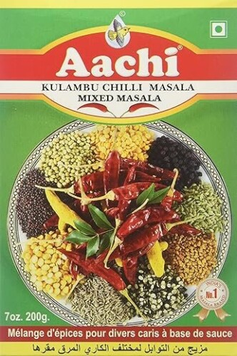 ఆచి కులంబు కారంపొడి 200 గ్రాముల ప్యాక్లో లభిస్తుంది. ఇది దక్షిణ భారతీయ పులుసు, కూరలు, సాంబార్ వంటి వంటలకు ప్రత్యేకంగా తయారైన మసాలా పొడి, ఘాటు మరియు రుచిని అందిస్తుంది.