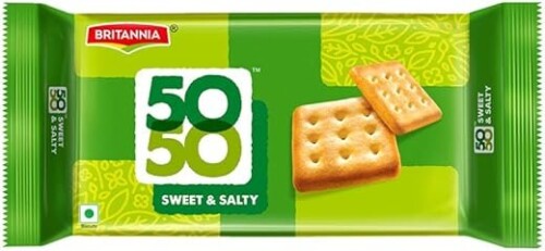 తీపి మరియు ఉప్పు రుచుల మేళవింపుతో రూపొందిన బ్రిటానియా 50-50 బిస్కెట్లు – ప్రతి బైట్‌లో విభిన్నమైన రుచి అనుభవాన్ని కలిగించే స్నాక్.