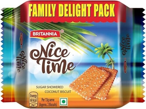 చక్కెర రేకులతో పూతపూయబడిన తీయటి బ్రిటానియా నైస్ టైమ్ బిస్కెట్లు – ప్రతి బైట్‌లో మృదువైన మరియు మధురమైన అనుభూతి.