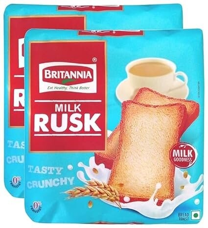 పాల రుచితో నిండి ఉన్న బ్రిటానియా టోస్టీ మిల్క్ రస్క్ – టీలో ముంచి తినేందుకు మధురమైన క్రిస్పీ టోస్ట్. రెండు ప్యాక్‌లతో ఎక్కువ కాలం ఆనందించండి.