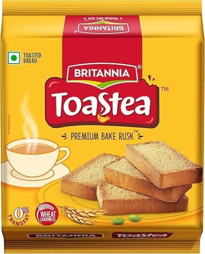బ్రిటానియా టోస్టీ ప్రీమియం బేక్ రస్క్ – క్రిస్పీగా, సువాసనగా ఉండే టీలో ముంచి తినేందుకు అద్భుతమైన టేస్ట్. ప్రతి సిప్‌తో రుచి మేళవించే స్నాక్.