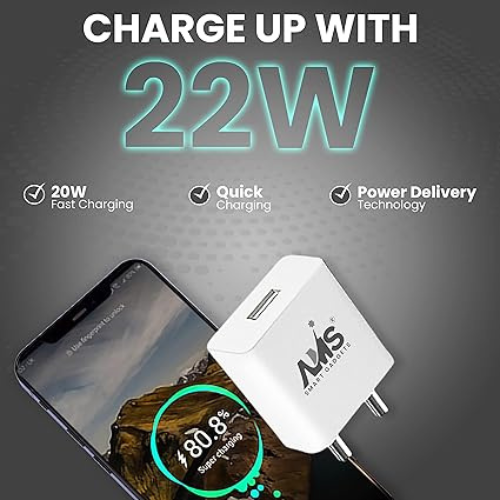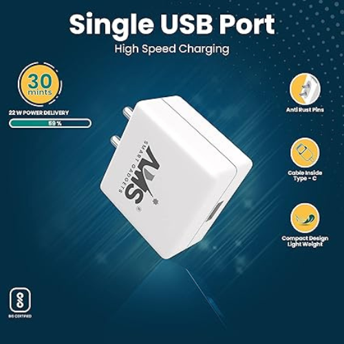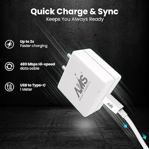 AMS Fast Charger with USB Cable (White) | ఫాస్ట్ చార్జర్ విత్ USB కేబుల్ (వైట్)
