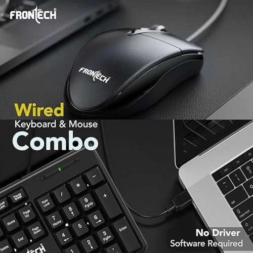 The Frontech JIL-1672 Wired Keyboard and Mouse Combo is designed to deliver dependable performance for both home and office use. The full-sized keyboard features soft, responsive keys with a comfortable layout for efficient typing. Paired with a high-precision optical mouse, this combo ensures smooth cursor control and accurate tracking on any surface.