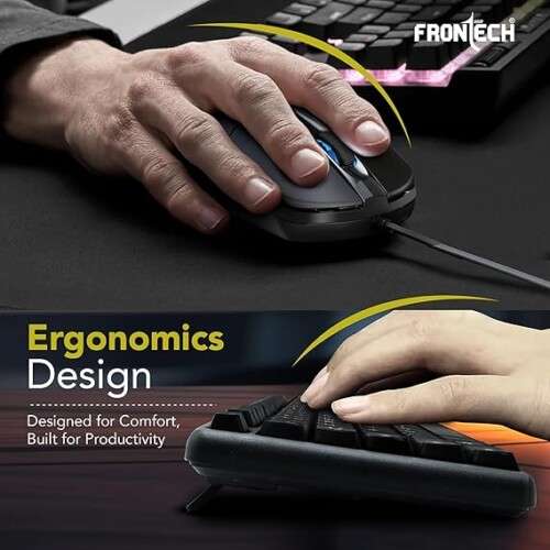 The plug-and-play USB interface offers instant connectivity—no drivers or setup required. With durable construction, quiet keystrokes, and ergonomic design, the Frontech JIL-1672 combo provides a balanced blend of comfort and functionality, perfect for long hours of work or study.