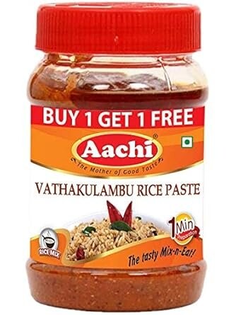 ఆచి వత్తకులంబు పేస్ట్ 200 గ్రాముల ప్యాక్ (బయ్ 1 గెట్ 1 ఆఫర్తో) అందుబాటులో ఉంది. ఇది రుచికరమైన దక్షిణ భారతీయ వత్తకులంబు తయారీకి తక్కువ సమయం మరియు ఎక్కువ రుచి ఇవ్వగల సిద్ధంగా ఉన్న మసాలా పేస్ట్.