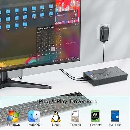 Equipped with USB 3.0 interface for ultra-fast transfer speeds (up to 5Gbps), it ensures efficient data backup, media storage, and secure file access. The included power adapter provides stable power to large-capacity drives, while the plug-and-play setup requires no drivers.