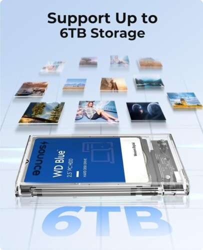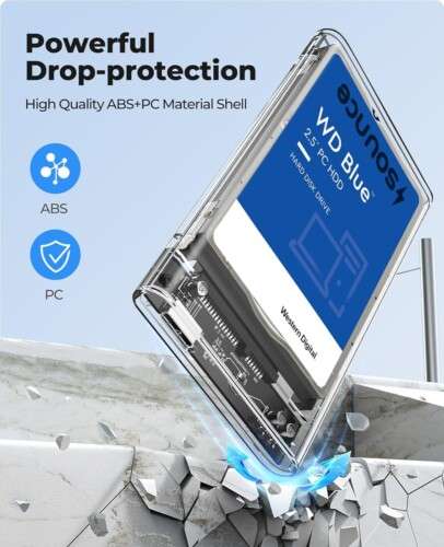 The Sounce Transparent 2.5″ SATA to USB 3.0 Hard Drive Enclosure is designed for users who value both style and performance. Its crystal-clear acrylic casing allows you to showcase your drive while providing excellent protection. Compatible with 2.5″ SATA I/II/III HDDs and SSDs up to 2TB, it ensures smooth, high-speed data transfers up to 5Gbps with USB 3.0 connectivity.